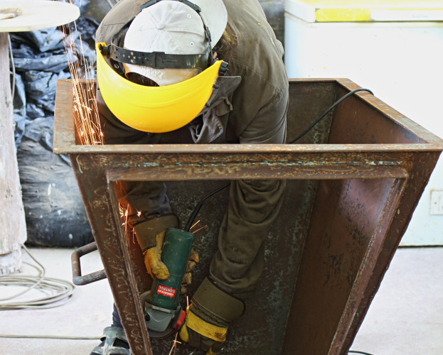 Inspiré d’un modèle de four pyramide Roderveld, ce four à bois a une capacité de 120 litres. Sa structure métallique a été fabriquée en Guyane et mis a part les briques réfractaires trouvées sur place, tous les autres éléments, fibre céramique, durcisseur de fibre, colle haute température, ont été importé. Ce n’était pas sans mal. La colle a été commandée 2 fois…..la douane l’ayant considérée comme « de l’explosif », retournée à l’expéditeur et omis de refermer le couvercle !